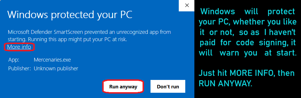 Install: Download, unzip, and run Mercenaries.exe in the Mercs folder.